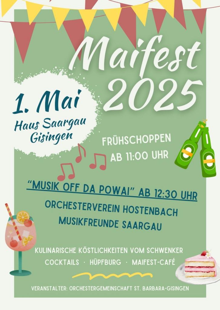 Auch in diesem Jahr veranstalten die Musikvereine Gisingen und St.Barbara wieder das beliebte traditionelle Maifest am Haus Saargau in Gisingen.